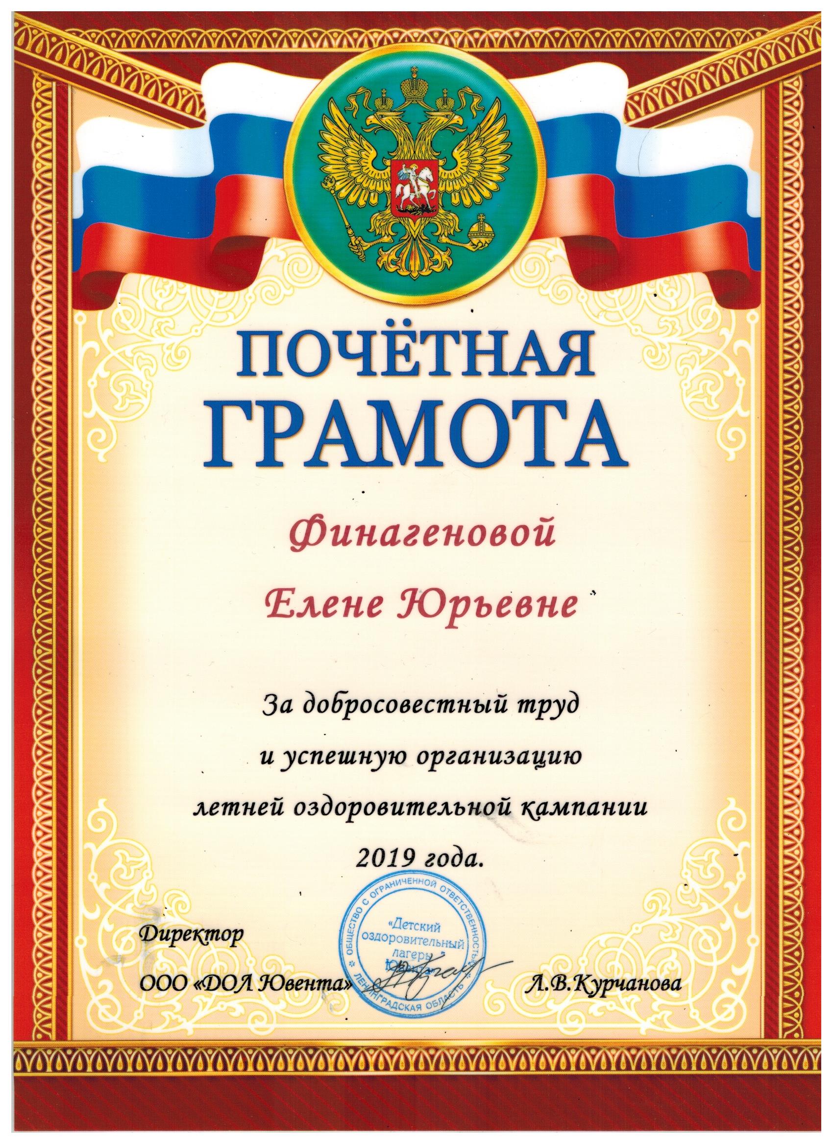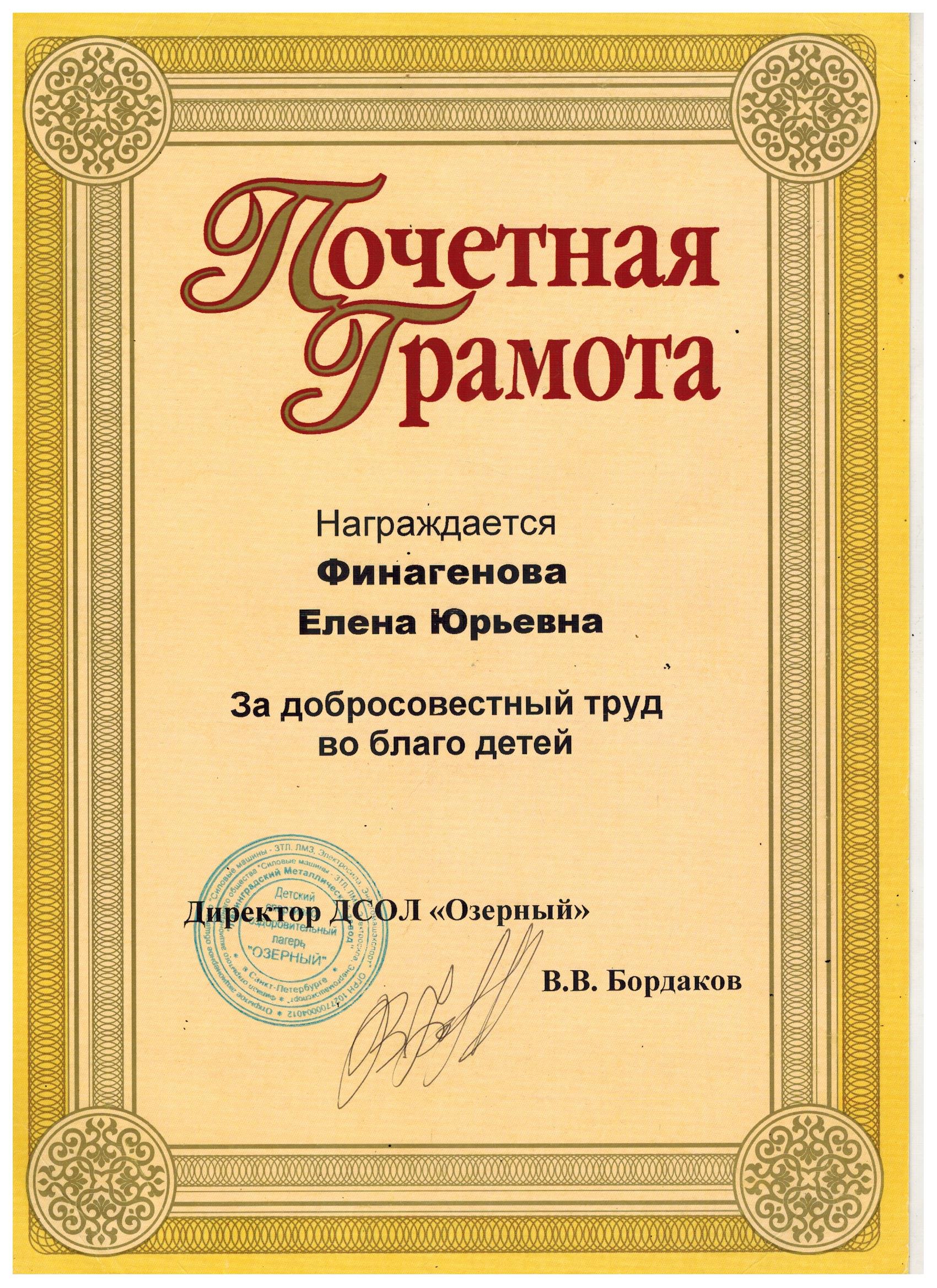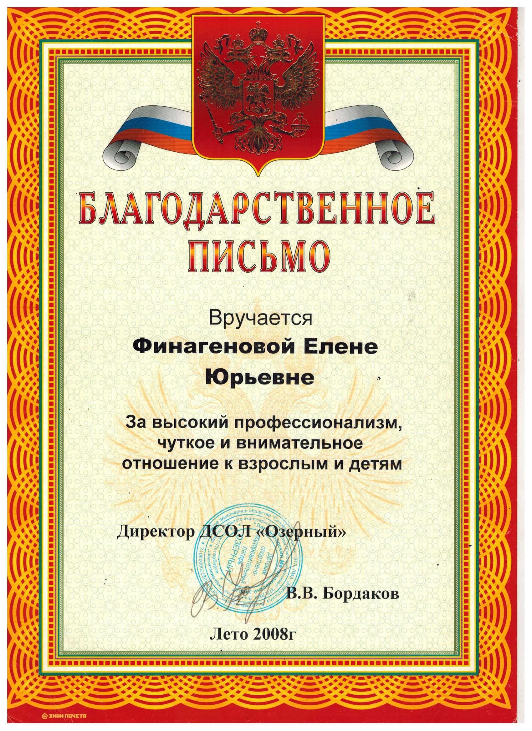 2008г. Почетная грамота «За высокий профессионализм, чуткое и внимательное отношение к детям».