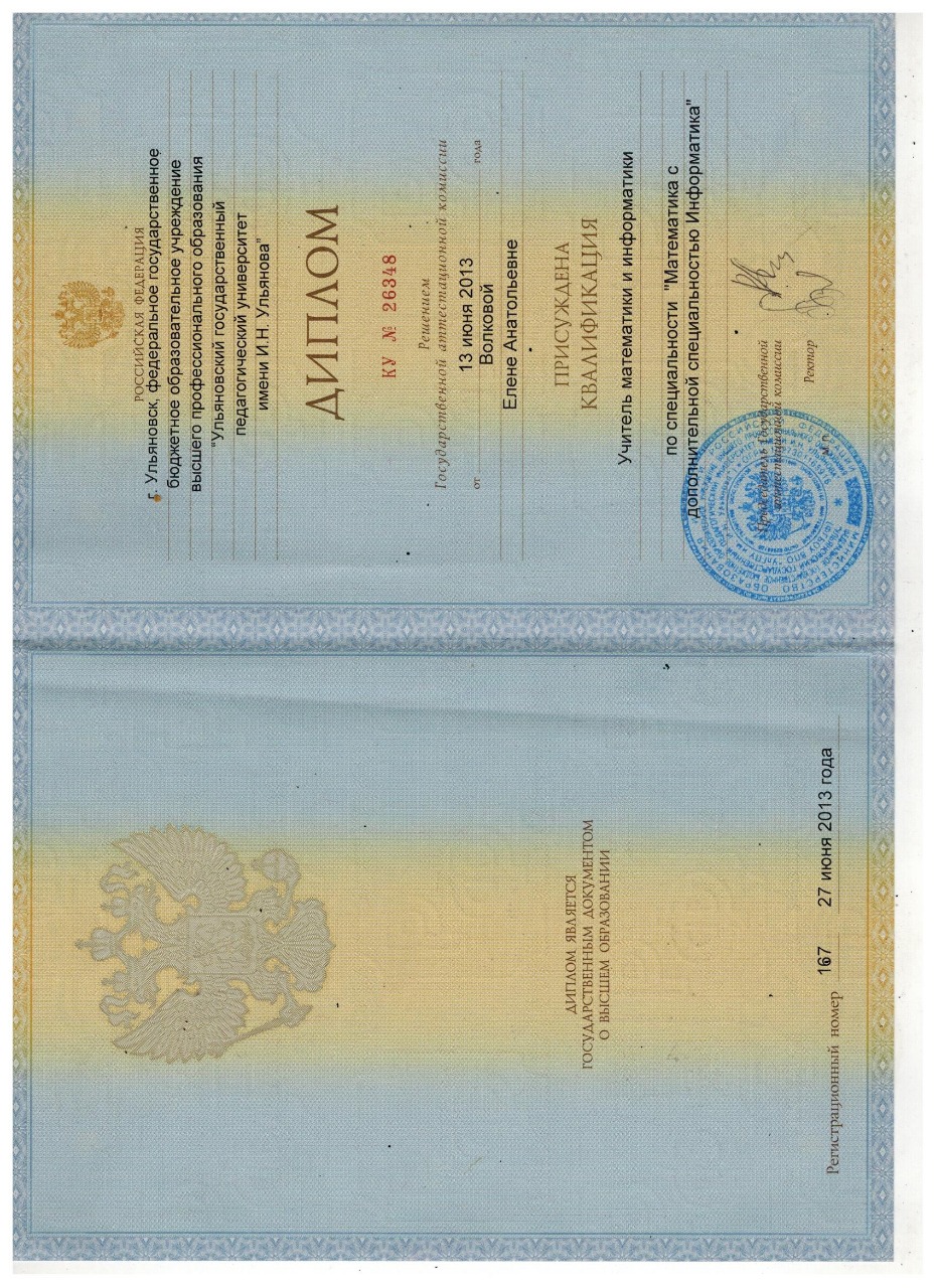 2000г. Повышение квалификации по программе «Традиции и инновации в преподавании математики». Санкт-Петербургский Университет Педагогического Мастерства.